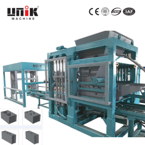Den automatiske sementmursteinsmaskinen består hovedsakelig av ni deler: rammemontering, trykkhodemontering, vibrasjonsmontering, matevogn, traktmontering, platemater, mursteinutgangsmaskin, hydraulisk system og kontrollsystem. Under arbeid lagres de blandede materialene i beholderen, og materialene som kreves for forskjellige murstein overføres til fôringsvognen gjennom tidskontroll, og fôringsboksen sendes til toppen av formen gjennom oljesylinderen for mating, og trykkhodet presses ned og den raske vibrasjonsprototypingen startes samtidig, Brettmateren skyver den dannede klossen automatisk ut av produksjonsplattformen til styringen av mursteinen til, kontroll system.Vi har forskjellige størrelser på blokkfremstillingsmaskiner for å møte forskjellige krav, hvis du trenger informasjon i detalj, kan du gjerne kontakte oss på sales@unikmachinery.com.