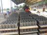 Blokkfremstillingsmaskin: Etter blandingsprosessen blir blandet materiale transportert til lagringen som er plassert over blokkmaskinen, etter at materialet er fylt i formen, påføres kompresjon fra formhodet og vibrasjon fra vibrerende talbe for å konsolidere materialet til disse betongblokkenheter.